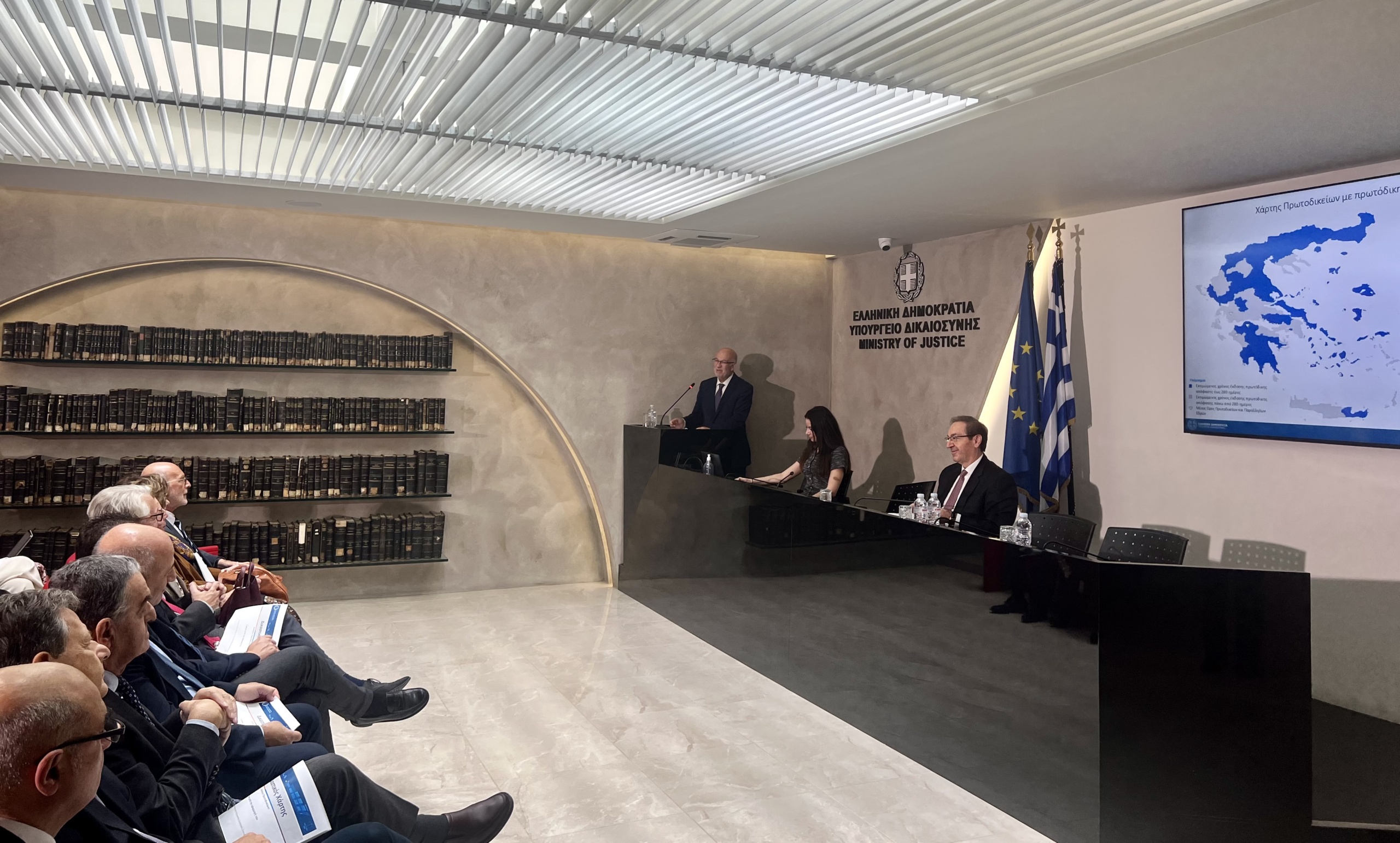 Ο Υπουργός Δικαιοσύνης, Γιώργος Φλωρίδης τόνισε ότι «η σταδιακή έως θεαματική βελτίωση του εκτιμώμενου χρόνου έκδοσης απόφασης μετά τον Δικαστικό Χάρτη, αφορά το 92% της δικαστικής ύλης που πανελλαδικά εκδικάζεται. Άρα λοιπόν στο 92% των υποθέσεων που εκδικάζεται, έχουμε μια σοβαρή επιτάχυνση. Επίσης, η μεγάλη πλειοψηφία των Πρωτοδικείων της Χώρας που εκδίδει πρωτόδικη απόφαση σε εκτιμώμενο χρόνο έως 280 ημέρες, δηλαδή κάτω από τον ευρωπαϊκό μέσο όρο που μας δίνει η CEPEJ, δείχνει ότι η μεγάλη αυτή αλλαγή εξελίσσεται θεαματικά. Πρέπει να συνεκτιμήσουμε ότι η τάση αυτή θα συνεχιστεί και θα επιταχυνθεί γιατί από την 1η Ιανουαρίου του 2026 ξεκινάει η εφαρμογή της νέας Πολιτικής Δικονομίας, όπου οι χρόνοι εκεί θα φέρουν πολύ πιο θεαματικά αποτελέσματα από τα μέχρι τώρα. Αυτή η αναφορά στα Πρωτοδικεία που βρίσκονται κάτω από το όριο των 300 ημερών, δηλαδή 280 ημέρες, μας λέει ότι ήδη είμαστε πιο κάτω από τον μέσο όρο έκδοσης τελεσίδικων αποφάσεων των Χωρών του Συμβουλίου της Ευρώπης, που είναι 650 ημέρες. Γιατί έχουμε 280 ημέρες στον πρώτο βαθμό, που είναι ο βαθμός που καθυστερεί, και υπολείπονται 370 ημέρες για απόφαση στον δεύτερο βαθμό, που σημαίνει ότι με μεγάλη άνεση πια η Ελλάδα, στο μεγαλύτερο μέρος της είναι κάτω από τον μέσο όρο των Χωρών του Συμβουλίου της Ευρώπης, που είχαμε θέσει ως στόχο για το 2027. Κι αυτό το πιάσαμε το 2025.